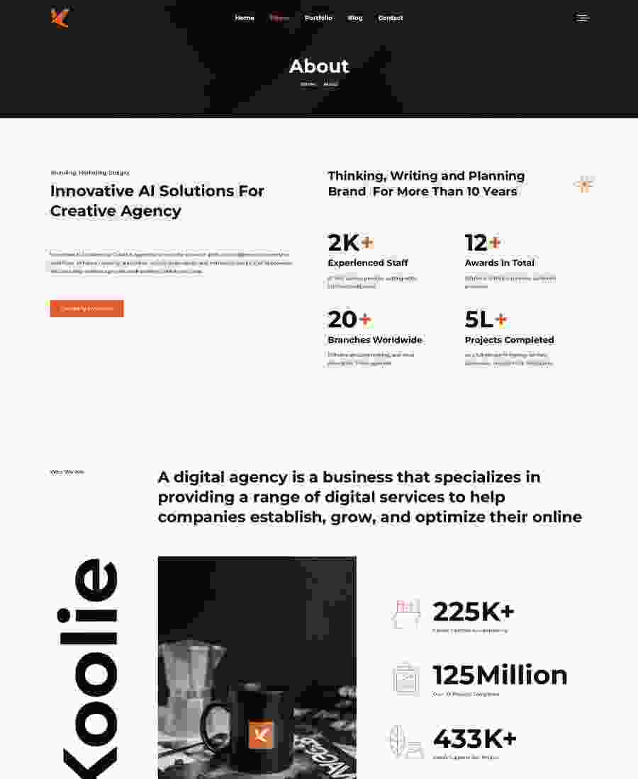 Koolie – Digital & Creative Agency Figma Template suits for an AI Agency, tech startup, chat bot, data science, digital agency, consulting, IT solutions, voiceover, video voiceover, robotics, science, industry, machine learning, neural network or other modern technology business, you need a website that keeps pace.